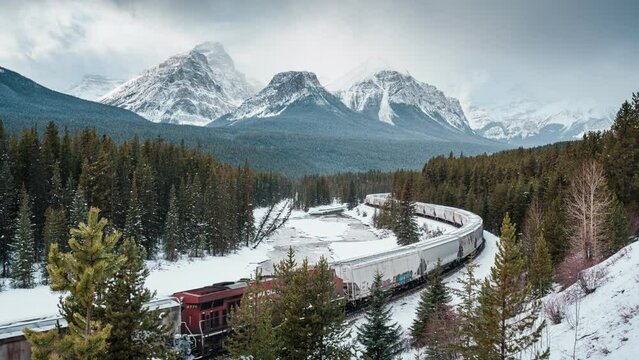 Few locations are as iconic as Morant’s Curve. This famous bend in the railway near Lake Louise combines sweeping mountain views with the curve of the tracks cutting through fresh snow.