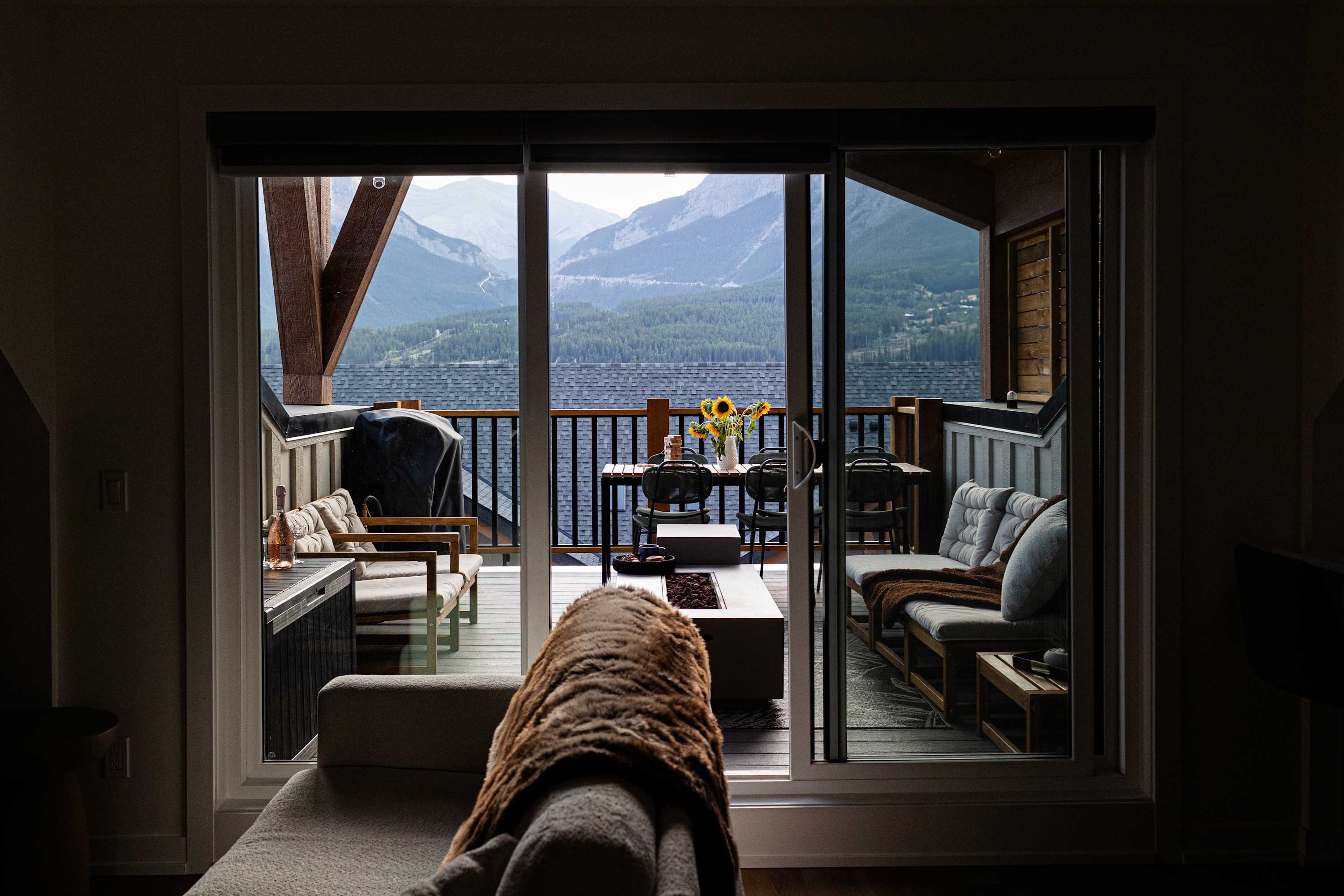 Relax in luxury on this stunning mountain-view patio in Canmore. Enjoy cozy seating, a gas fire pit, BBQ, and outdoor dining, all set against breathtaking Rocky Mountain views. Perfect for morning coffee or evening wine, this inviting space is ideal year-round. Whether you’re here to unwind or explore, this patio offers the perfect setting for memorable moments in the heart of the Rockies.